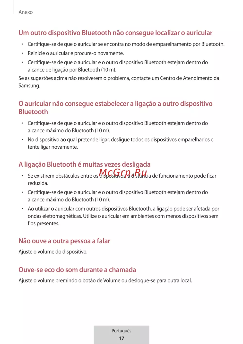Samsung EO-BG950 U Flex (EO-BG950CWEGRU) [223/674] O auricular não consegue estabelecer a ligação a outro dispositivo bluetooth