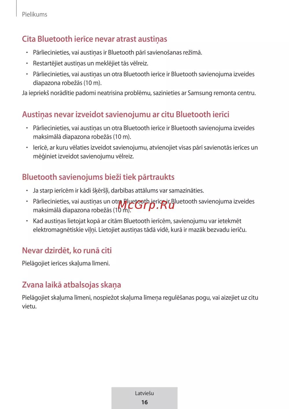 Samsung EO-BG950 U Flex (EO-BG950CWEGRU) [242/674] Bluetooth savienojums bieži tiek pārtraukts