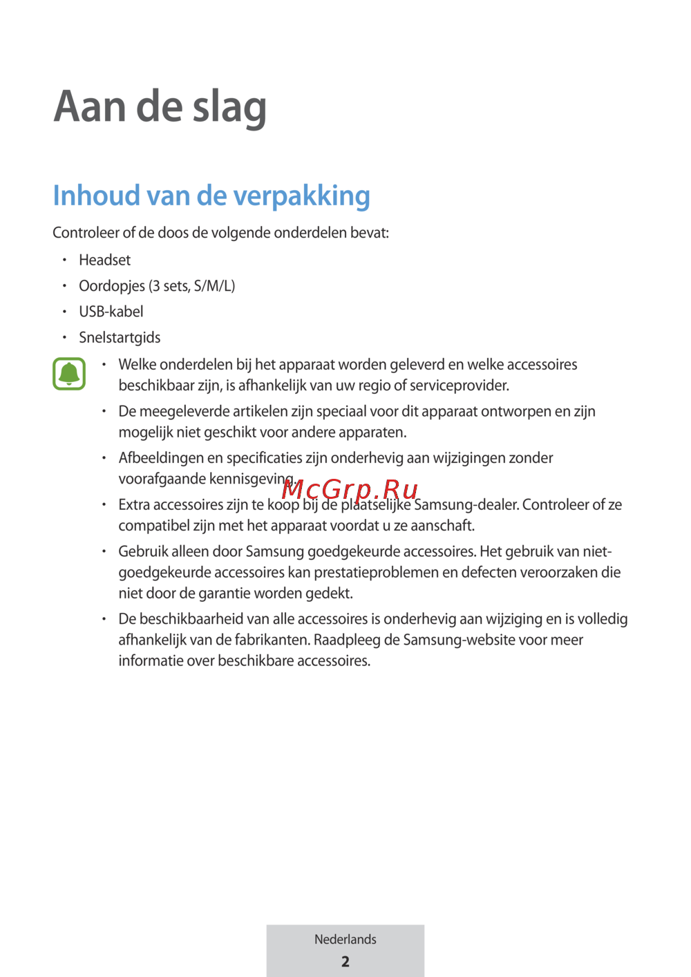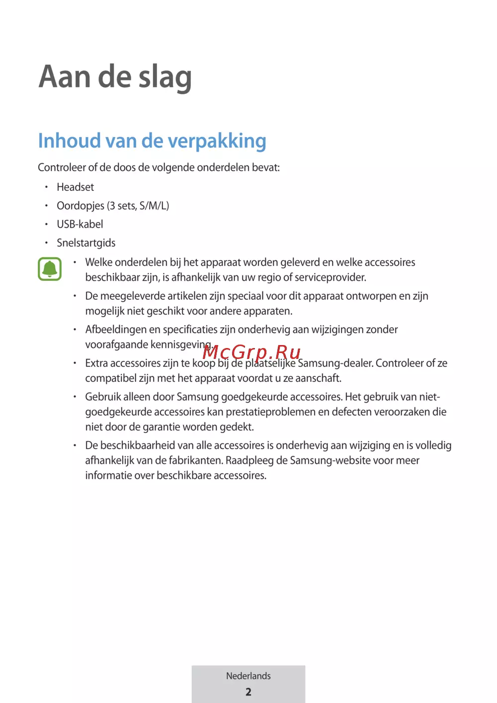 Samsung EO-BG950 U Flex (EO-BG950CWEGRU) [280/674] Inhoud van de verpakking