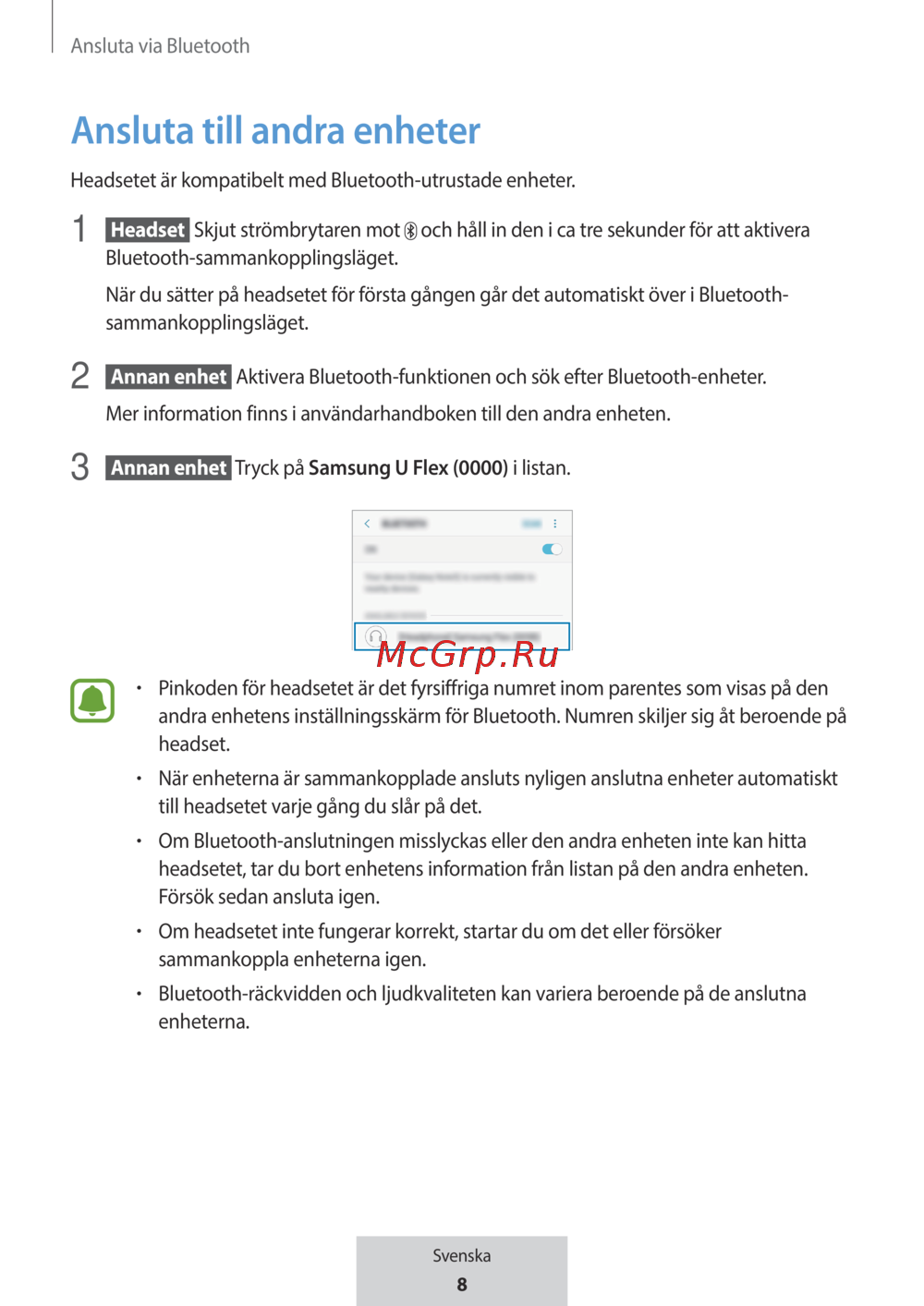 Annan enhet Aktivera Bluetooth-funktionen och sök efter Bluetooth-enheter.