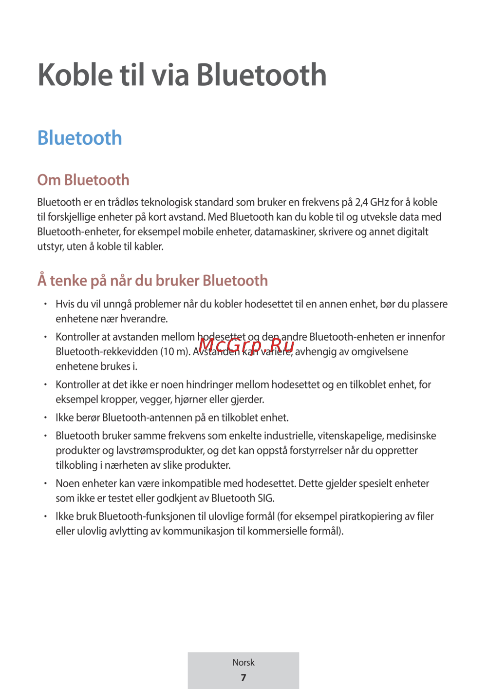 Ikke bruk Bluetooth-funksjonen til ulovlige formål (for eksempel piratkopiering av filer