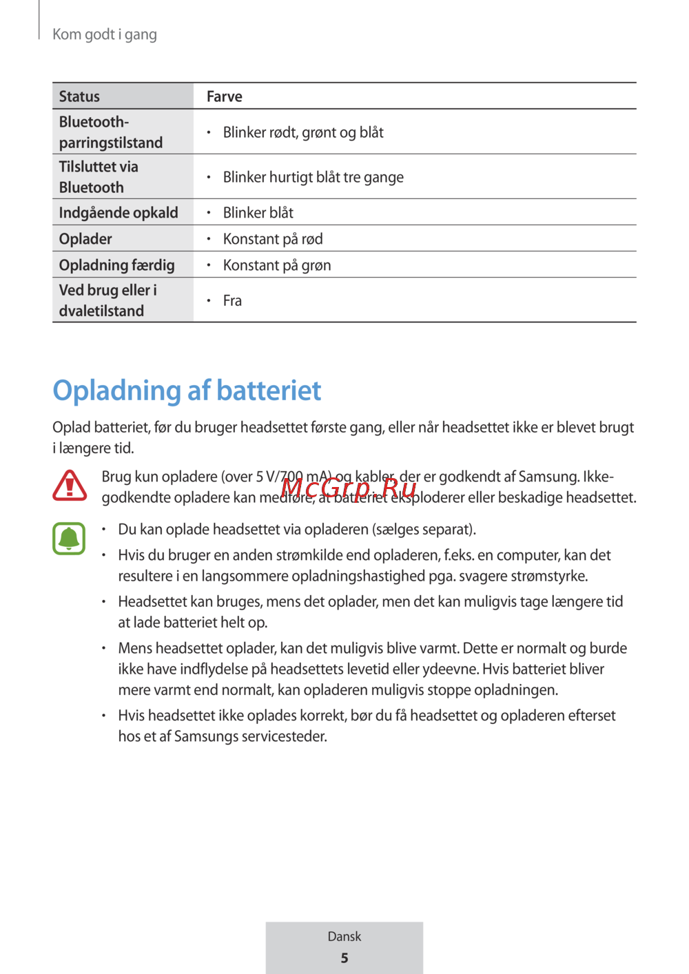 godkendte opladere kan medføre, at batteriet eksploderer eller beskadige headsettet.