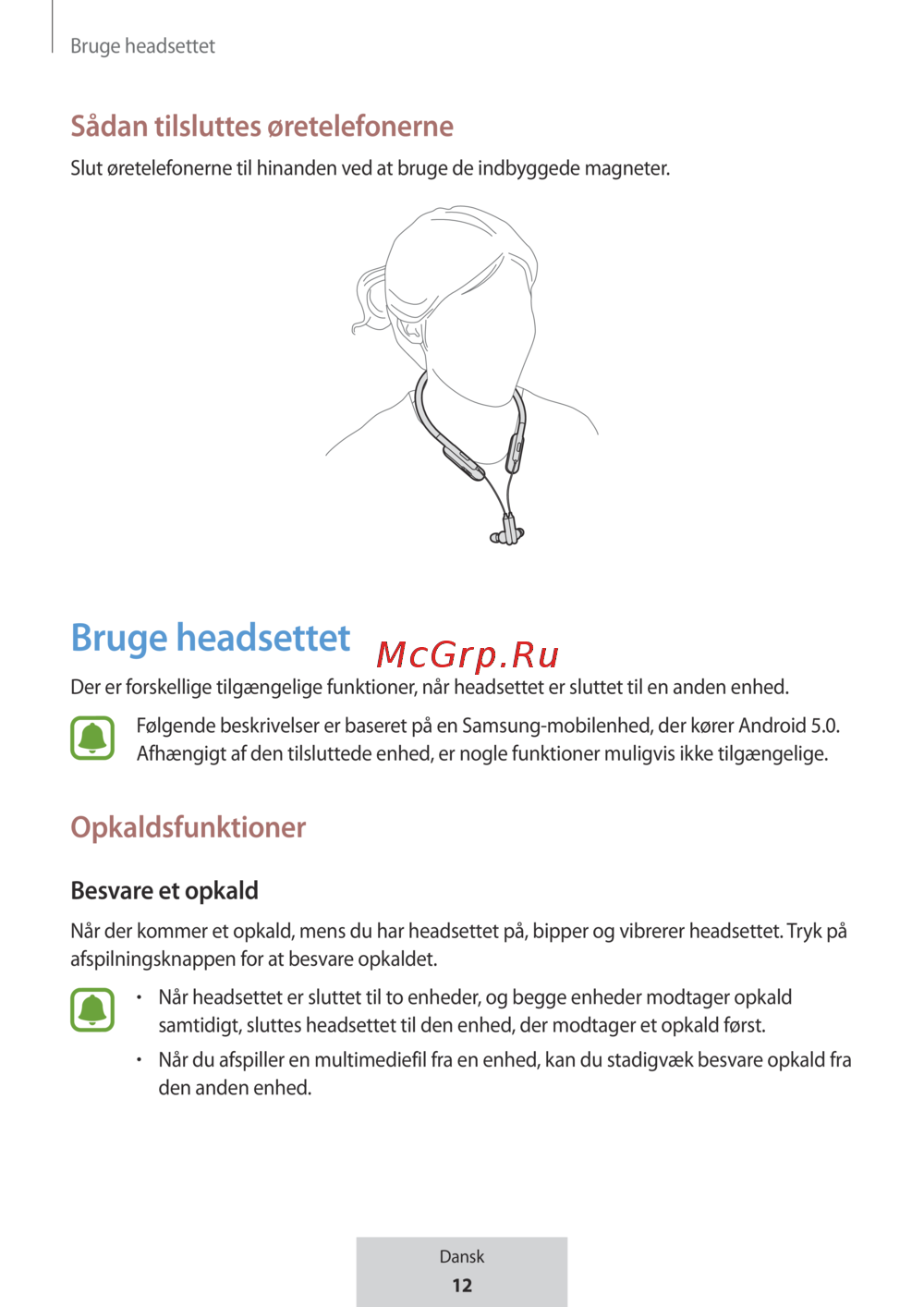 samtidigt, sluttes headsettet til den enhed, der modtager et opkald først.
