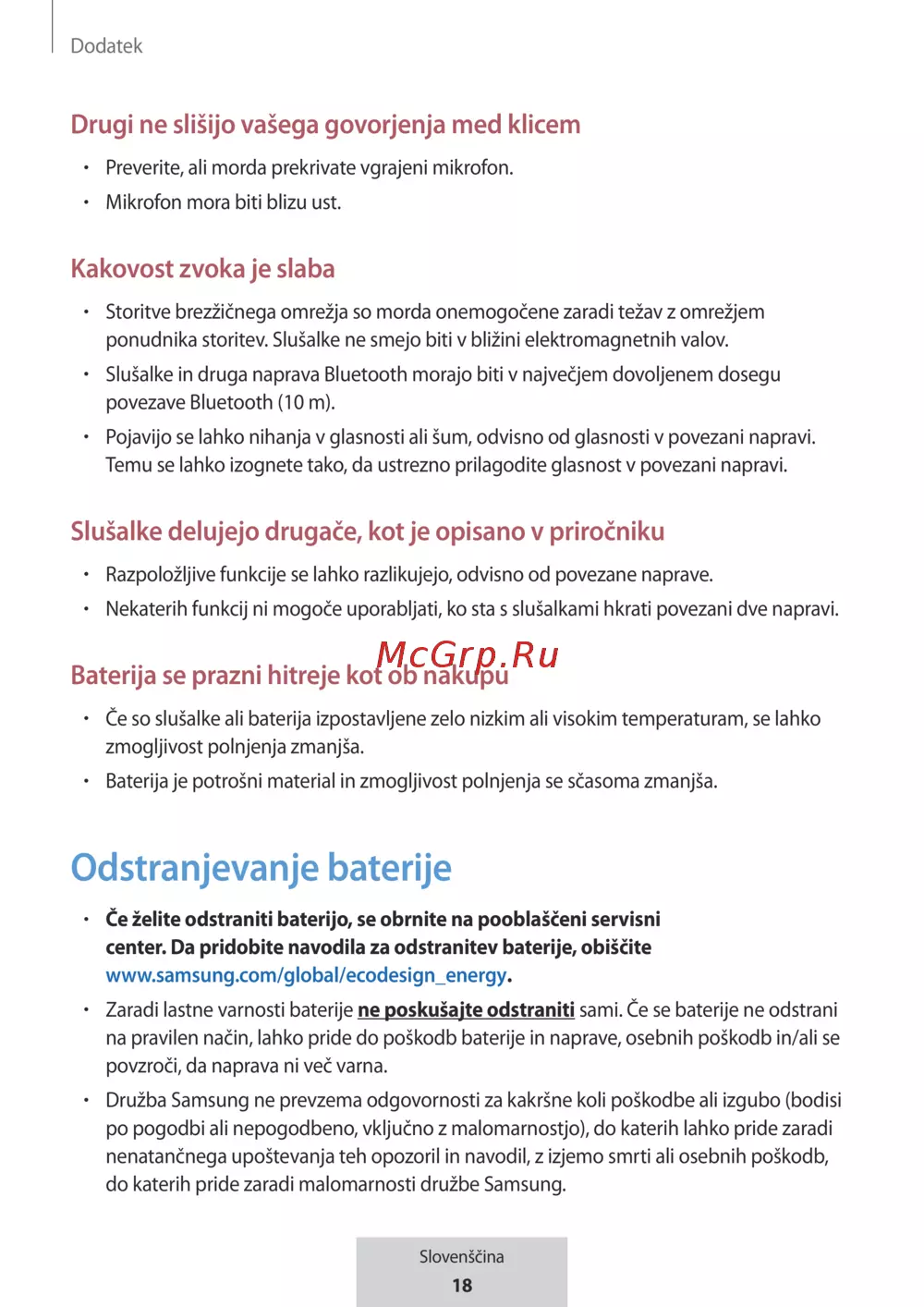 Samsung EO-BG950 U Flex (EO-BG950CWEGRU) [405/674] Slušalke delujejo drugače kot je opisano v priročniku
