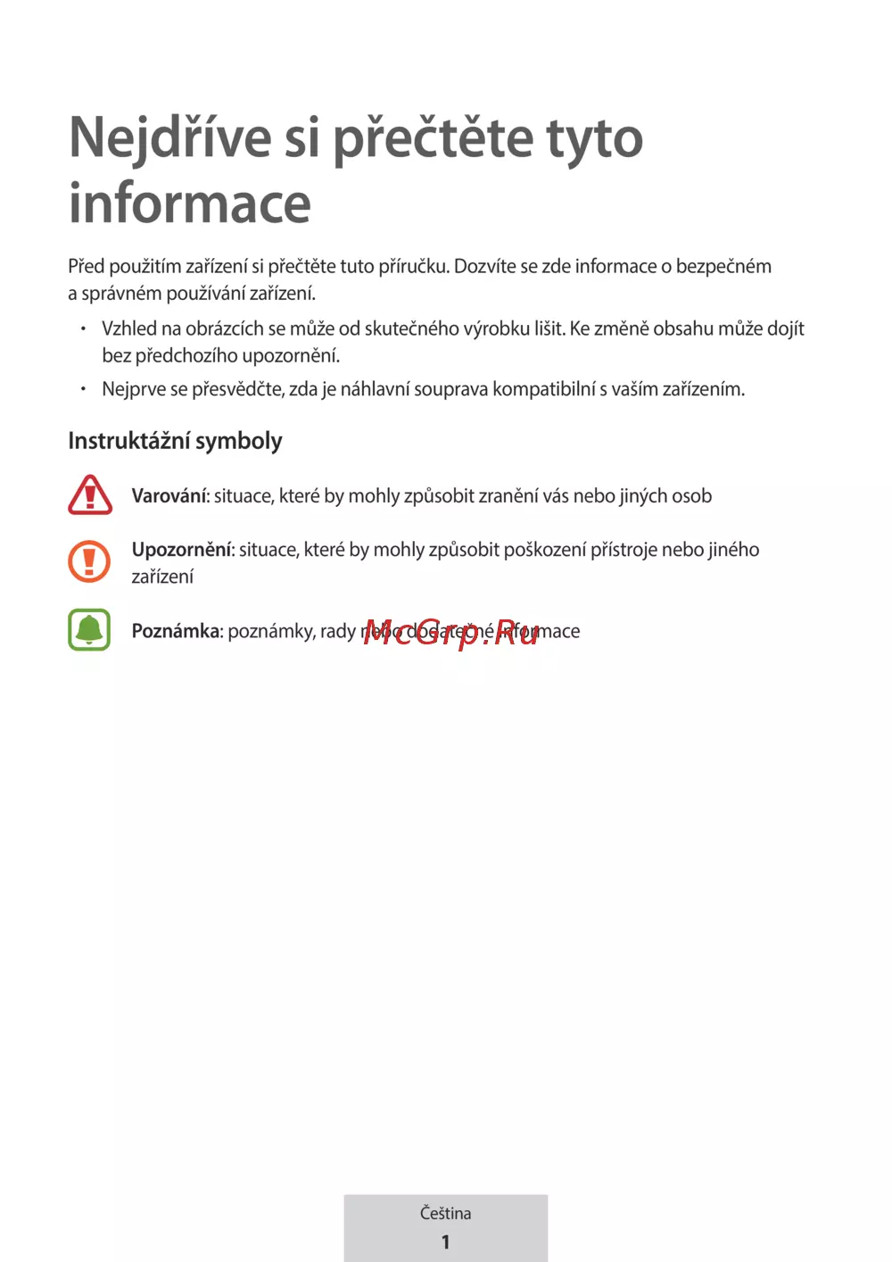Před použitím zařízení si přečtěte tuto příručku. Dozvíte se zde informace obezpečném