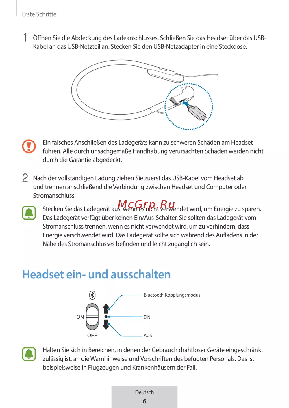 Ein falsches Anschließen des Ladegeräts kann zu schweren Schäden am Headset