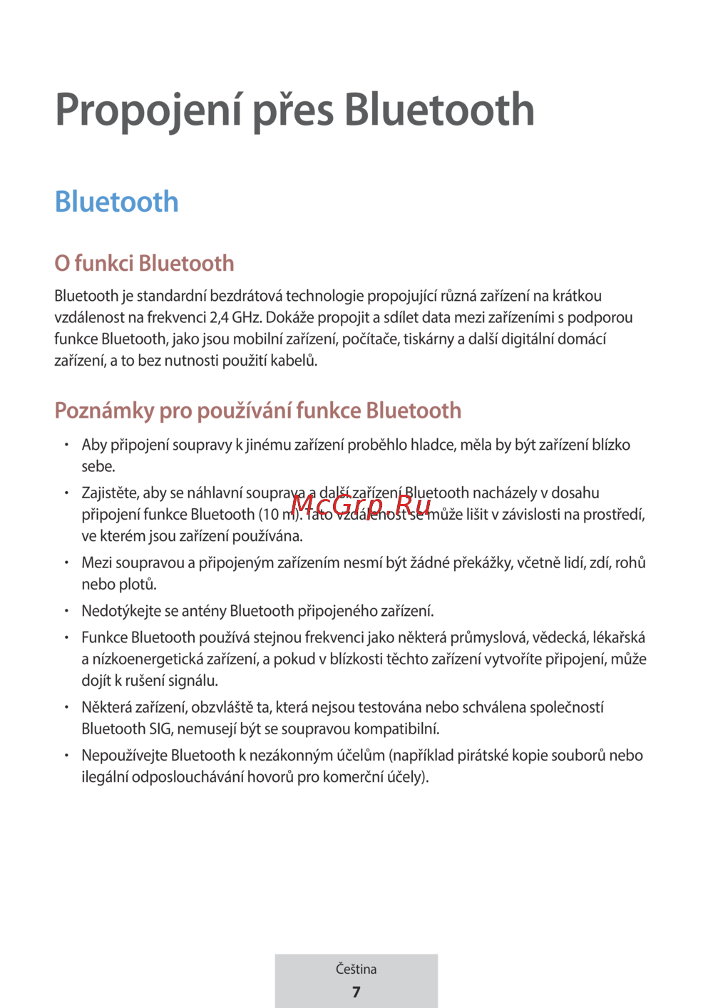 Nepoužívejte Bluetooth k nezákonným účelům (například pirátské kopie souborů nebo