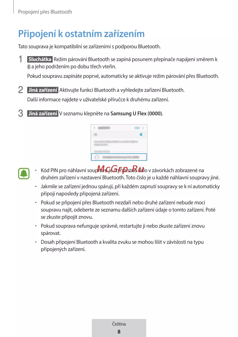 druhém zařízení v nastavení Bluetooth. Toto číslo je u každé náhlavní soupravy jiné.