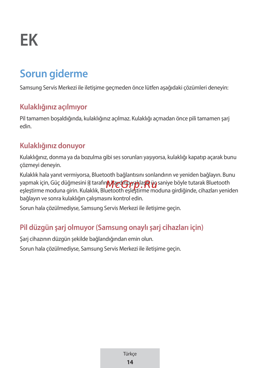 Samsung Servis Merkezi ile iletişime geçmeden önce lütfen aşağıdaki çözümleri deneyin: