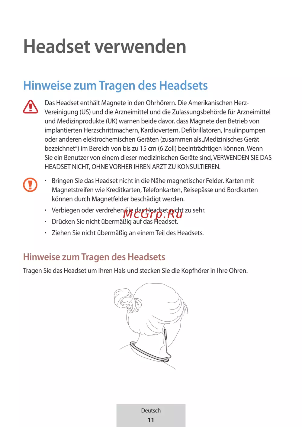Samsung EO-BG950 U Flex (EO-BG950CWEGRU) [48/674] Hinweise zum tragen des headsets