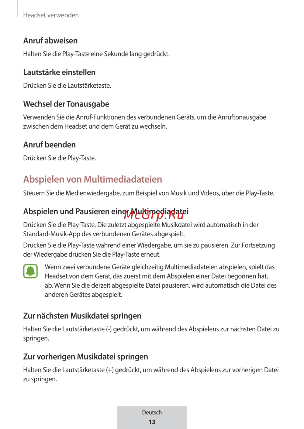 - The headset works differently as described in the manual p.18