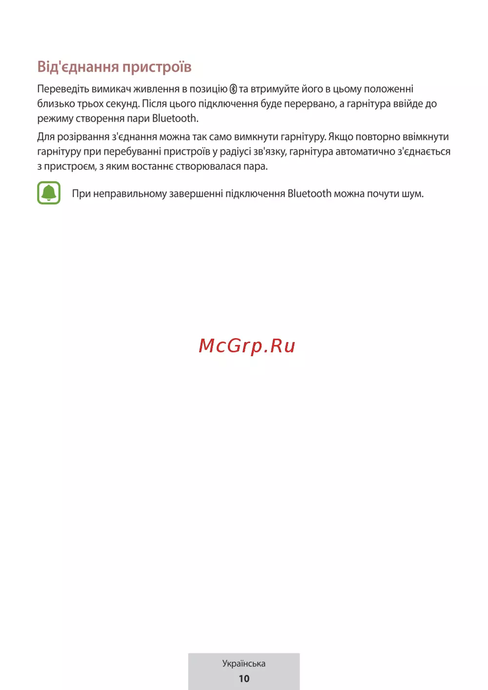 близько трьох секунд. Після цього підключення буде перервано, а гарнітура ввійде до