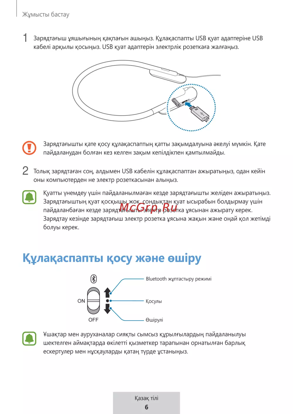 Зарядтағышты қате қосу құлақаспаптың қатты зақымдалуына әкелуі мүмкін. Қате