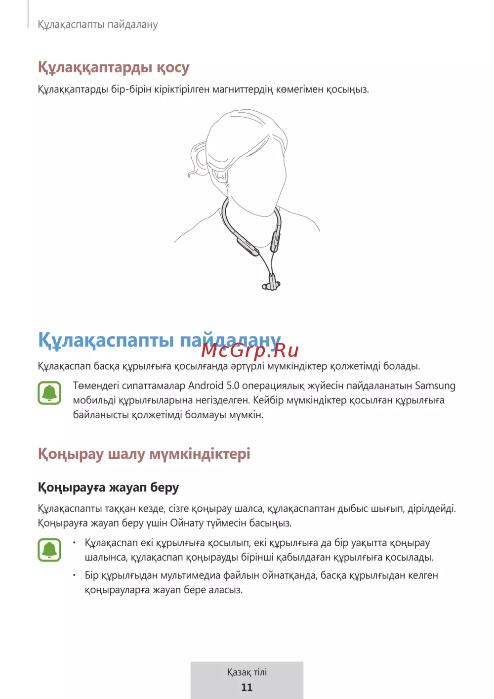 Samsung EO-BG950 U Flex (EO-BG950CWEGRU) [542/674] Құлақаспапты пайдалану