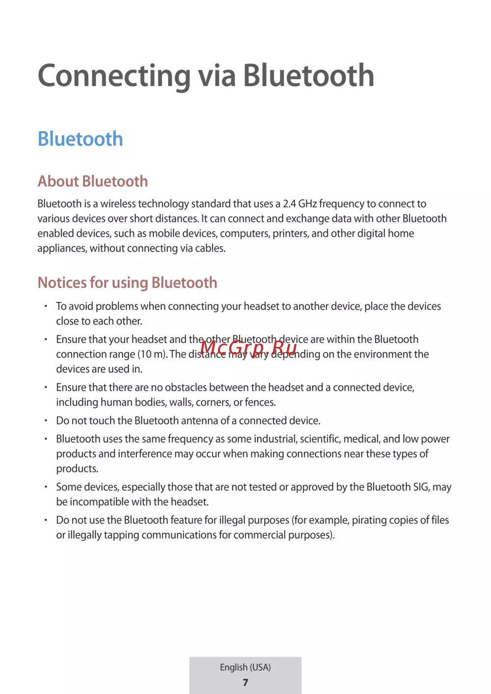 - Another bluetooth device cannot locate your headset p.17
