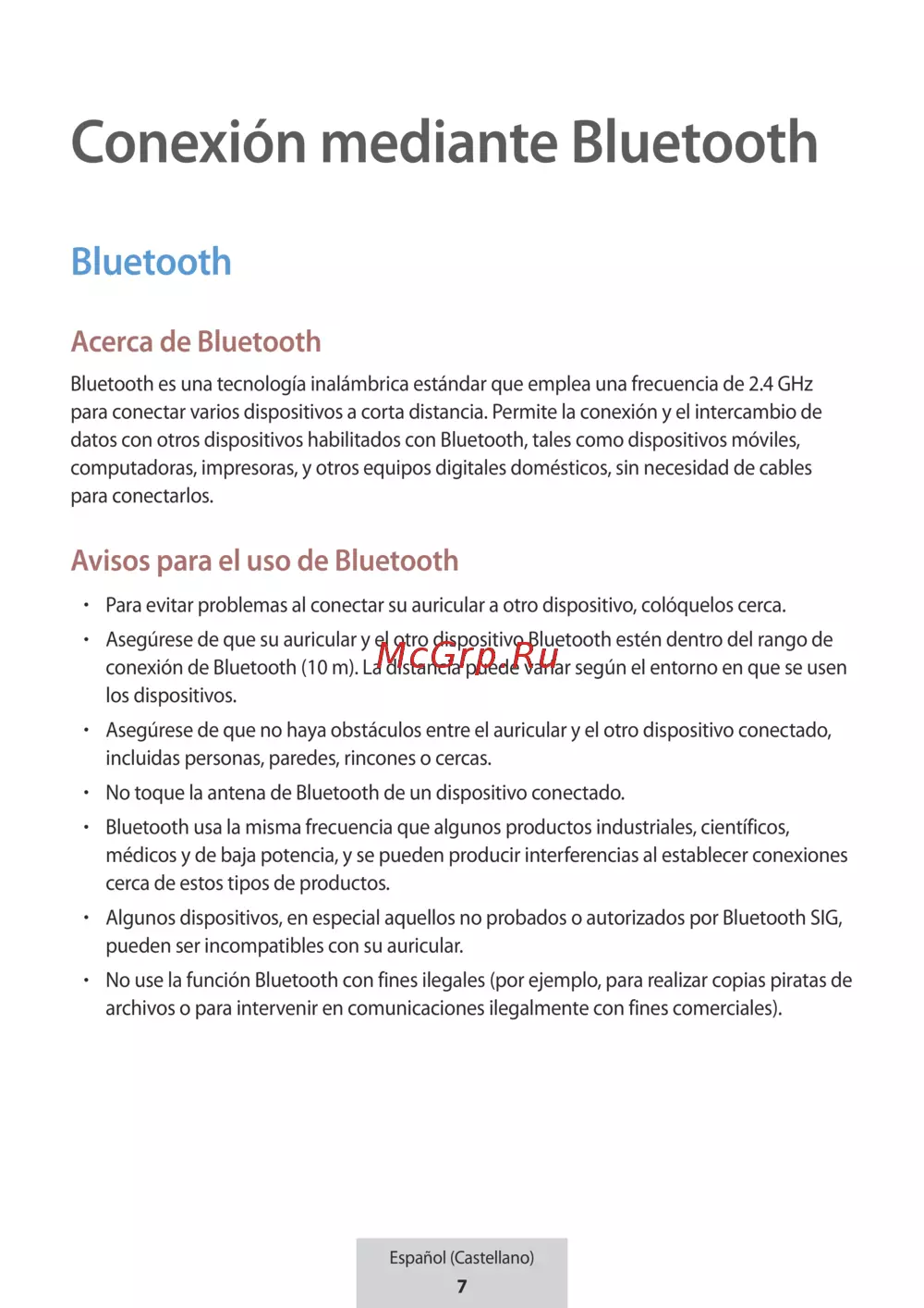No use la función Bluetooth con fines ilegales (por ejemplo, para realizar copias piratas de