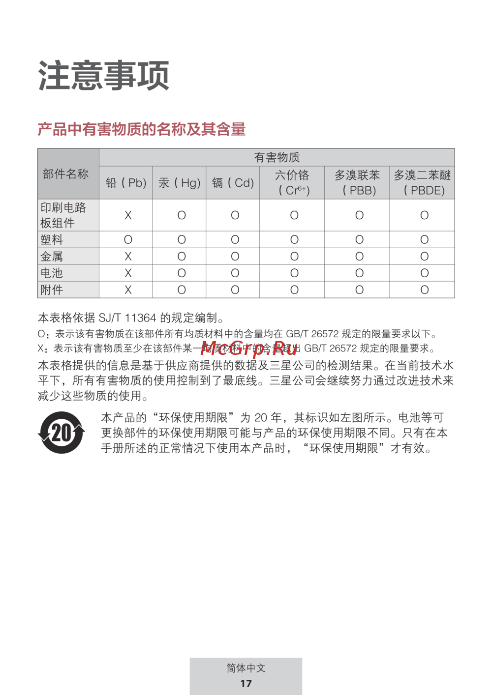手册所述的正常情况下使用本产品时,“环保使用期限”才有效。