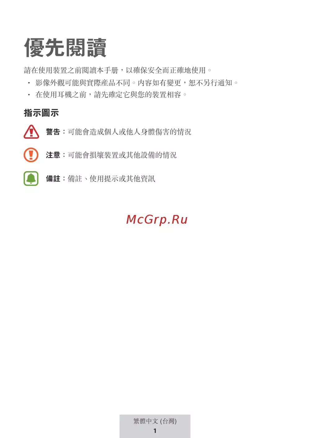 請在使用裝置之前閱讀本手冊,以確保安全而正確地使用。