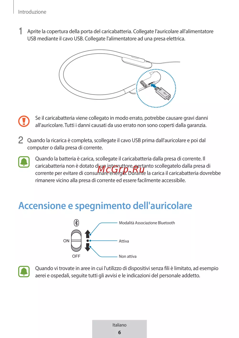 all'auricolare. Tutti i danni causati da uso errato non sono coperti dalla garanzia.