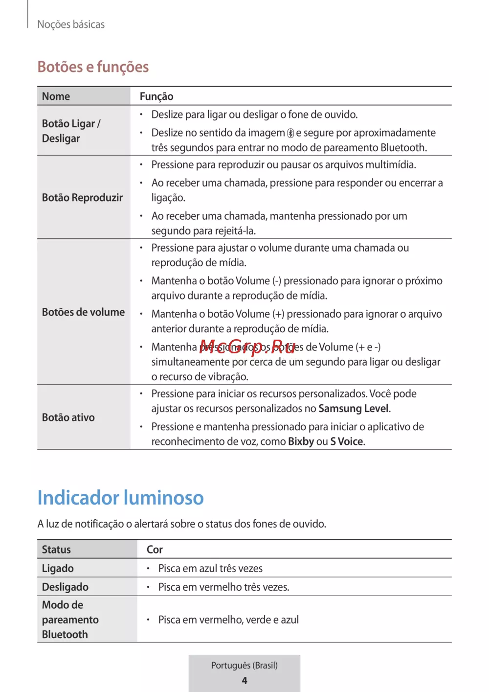 - Os fones funcionam de maneira diferente da descrita no manual p.657