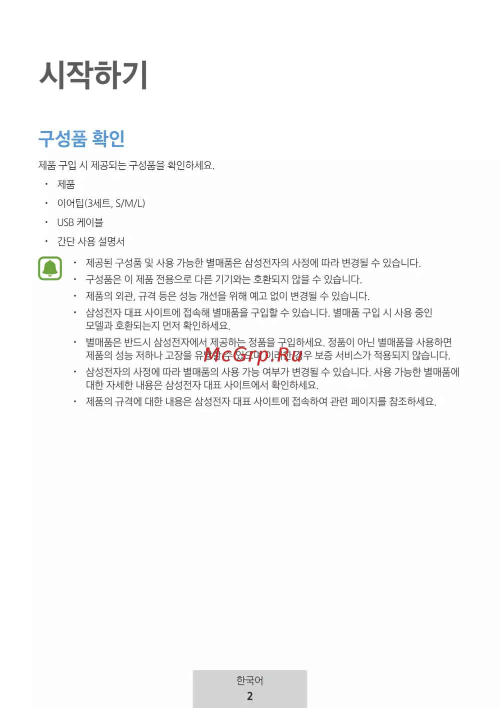 제공된 구성품 및 사용 가능한 별매품은 삼성전자의 사정에 따라 변경될 수 있습니다.