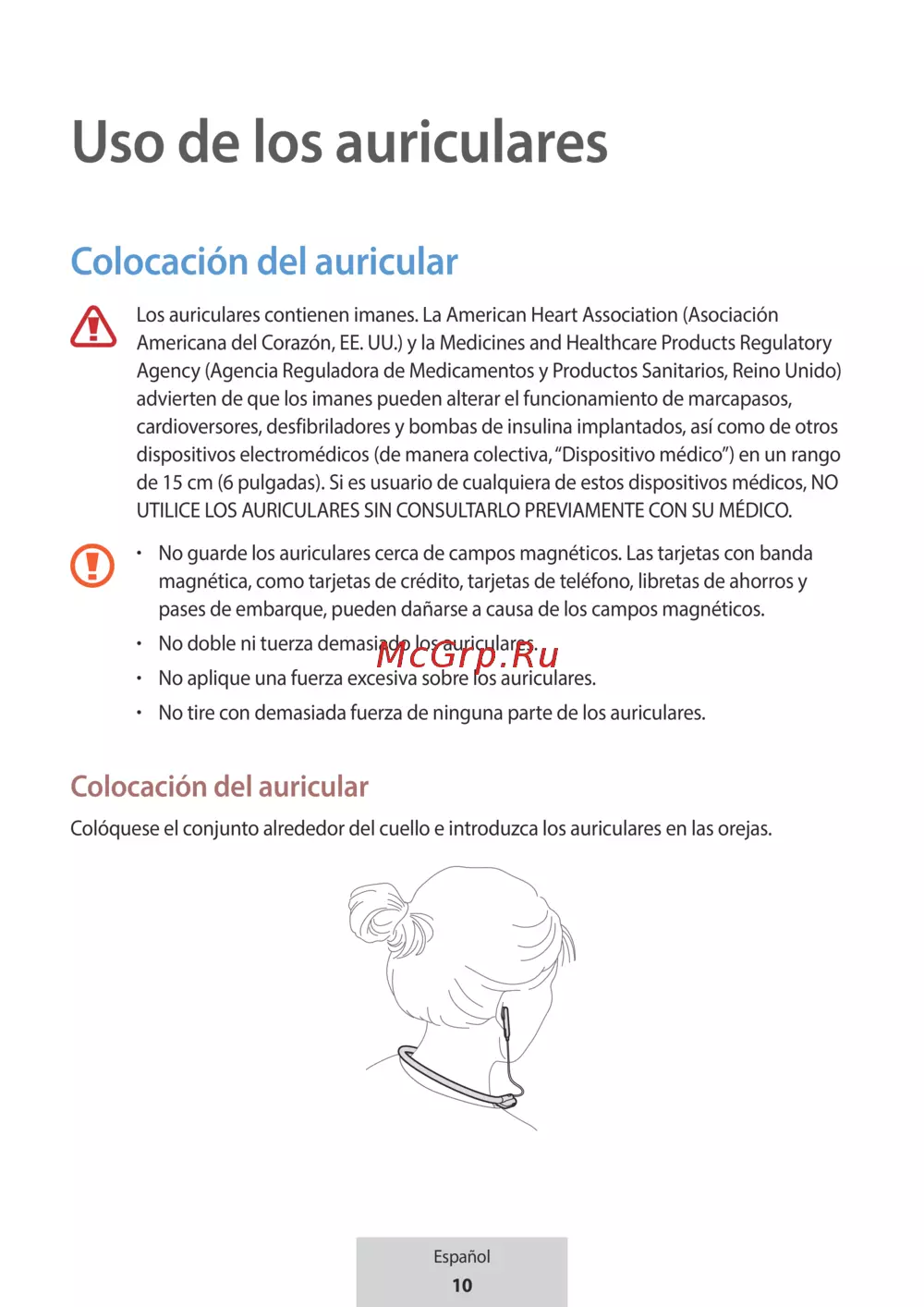 UTILICE LOS AURICULARES SIN CONSULTARLO PREVIAMENTE CON SU MÉDICO.