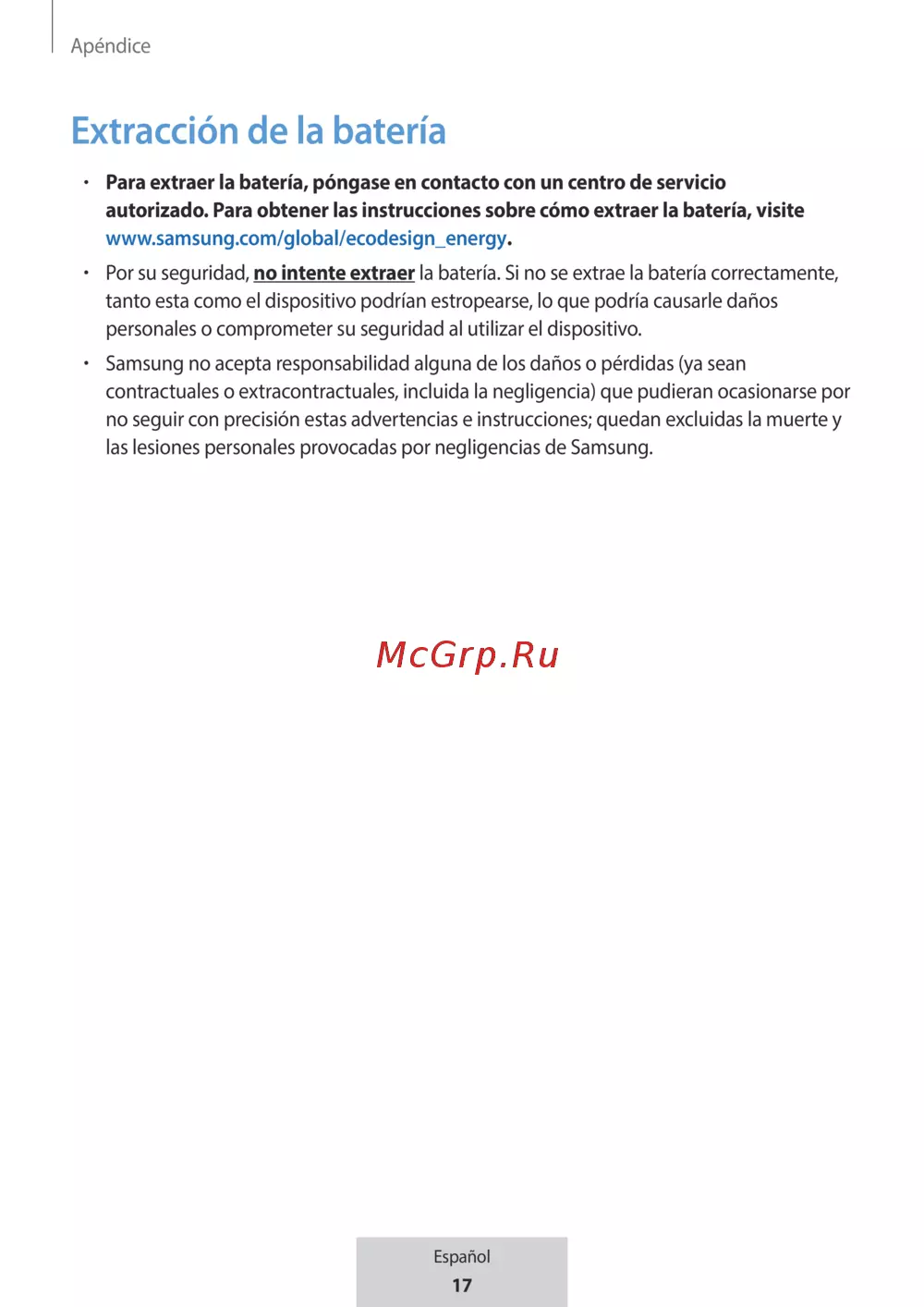 Para extraer la batería, póngase en contacto con un centro de servicio