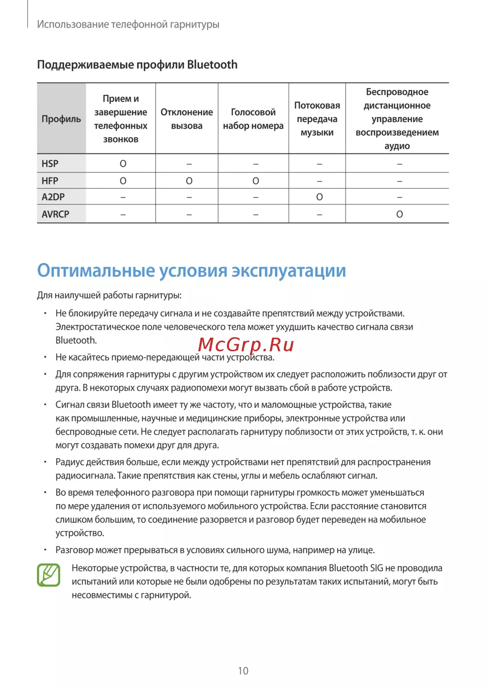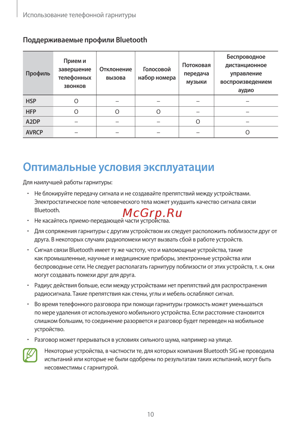Samsung EO-MG900 (MG900EBRGRU) [10/22] Поддерживаемые профили bluetooth
