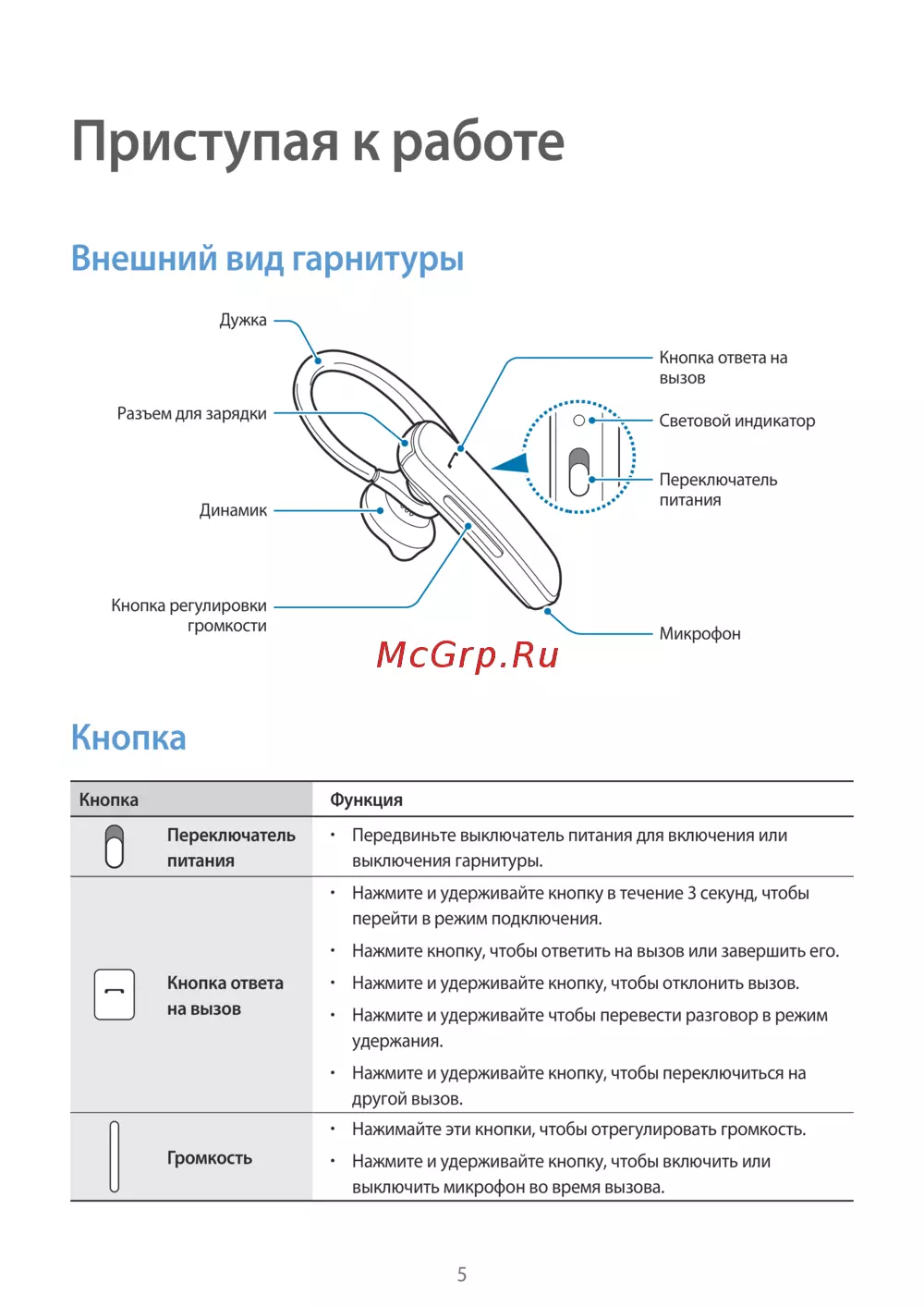 - Внешний вид гарнитуры p.5