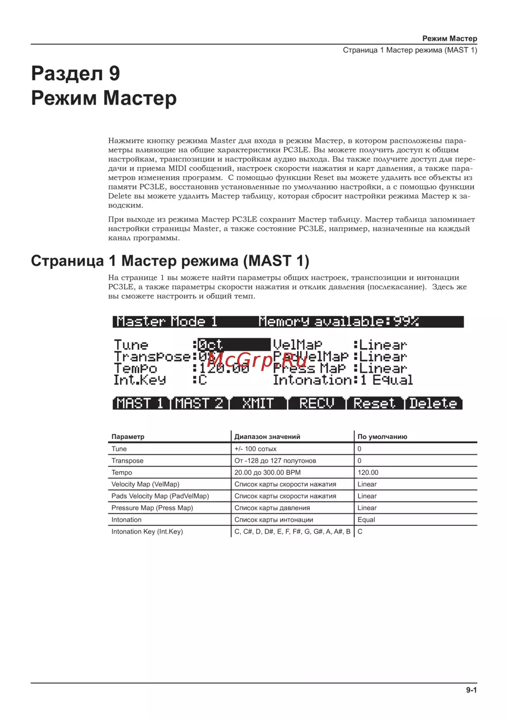 Kurzweil PC3LE8 [124/245] Страница 1 мастер режима mast 1