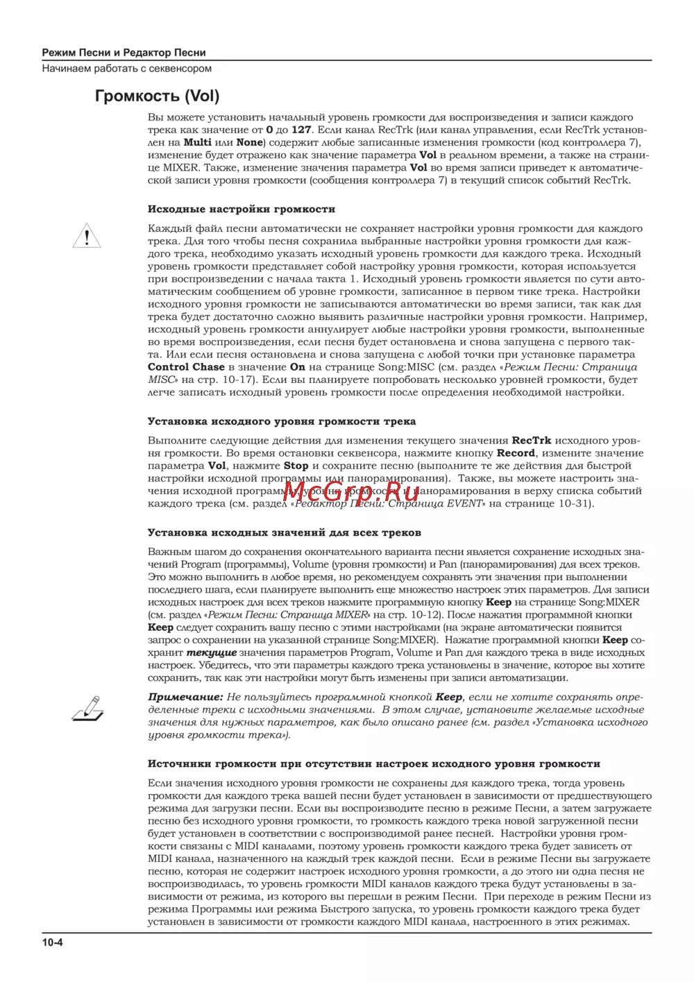 MISC» на стр. 10-17). Если вы планируете попробовать несколько уровней громкости, будет