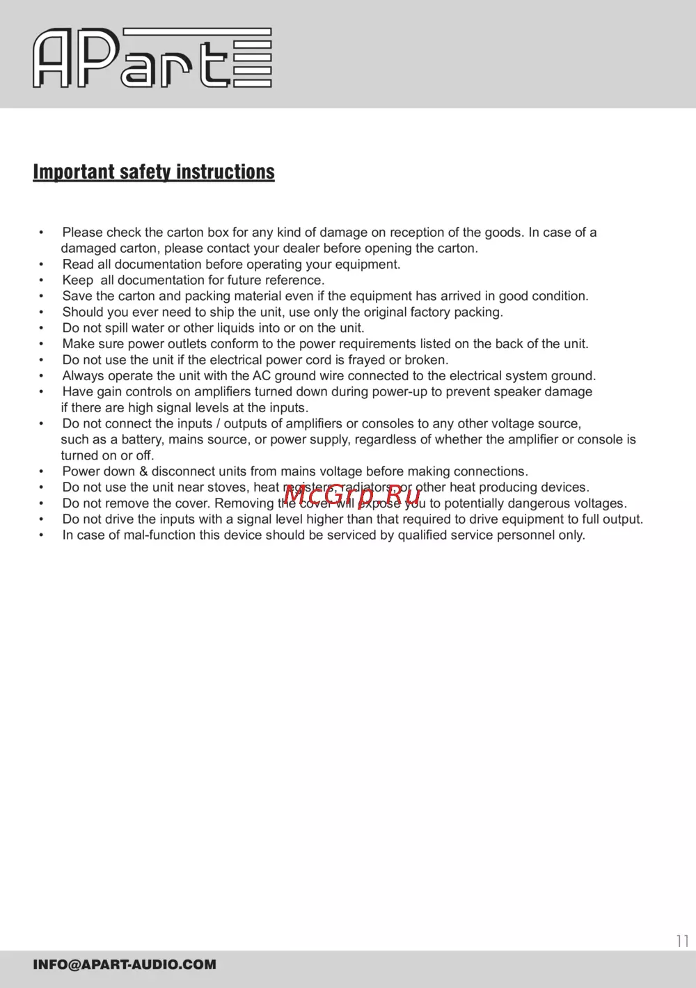 APart SDQ5PIR-W — важные инструкции по безопасности для аудиооборудования [11/12]
