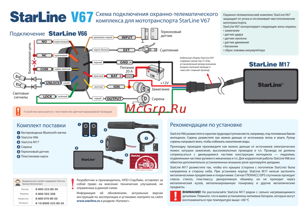 - Схема подключения охранно телематического комплекса для мототранспорта starline v67 p.1