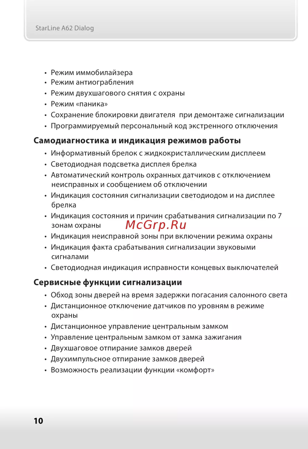 - Сервисные функции сигнализации p.10