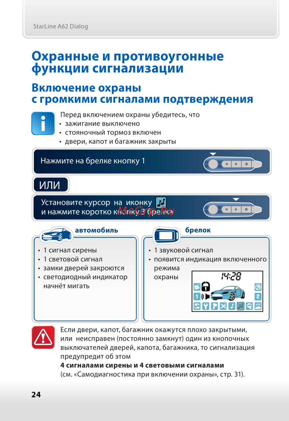 Starline A62 Dialog CAN FLEX [24/68] Охранные и противоугонные функции сигнализации