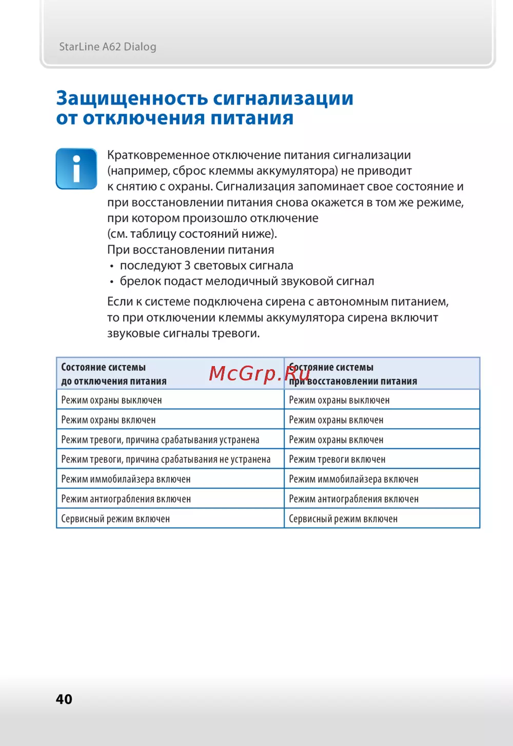 ![Starline A62 Dialog CAN FLEX [40/68] Последуют 3 световых сигнала брелок подаст мелодичный звуковой сигнал](/views2/2010199/page40/bg28.png)