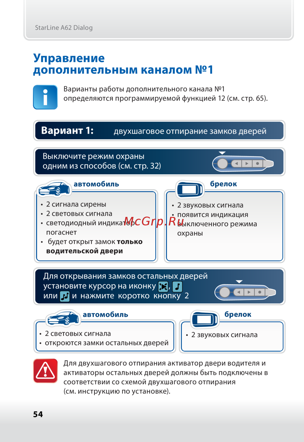 Starline A62 Dialog CAN FLEX [54/68] Управление дополнительным каналом 1