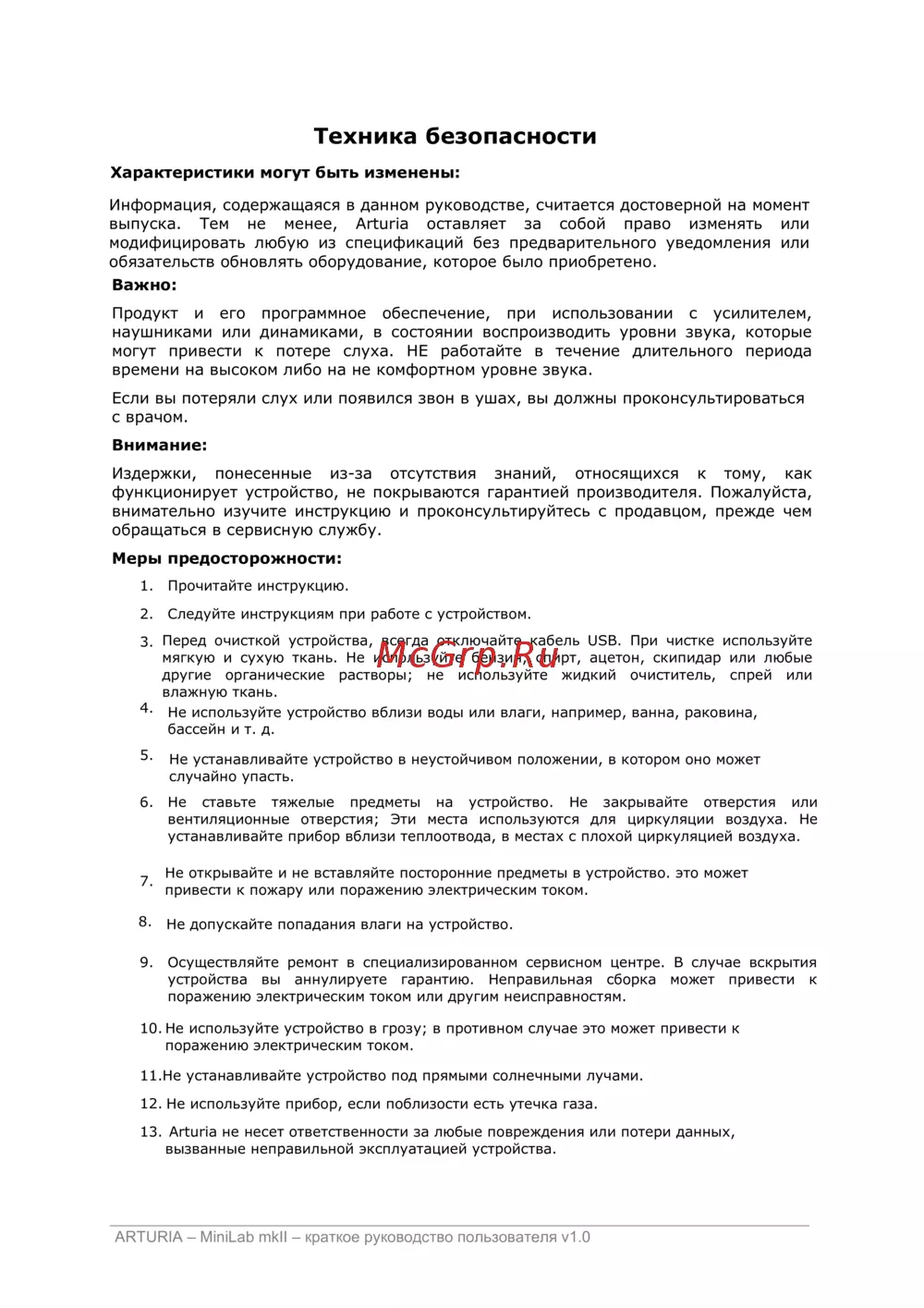 Arturia MiniLab mkII Inverted [3/18] Техника безопасности