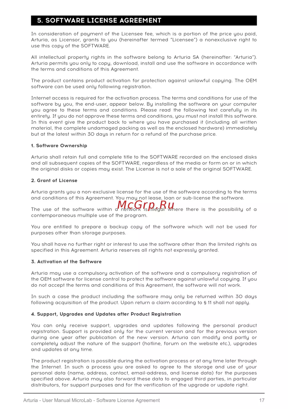 Arturia - User Manual MicroLab - Software License Agreement 17