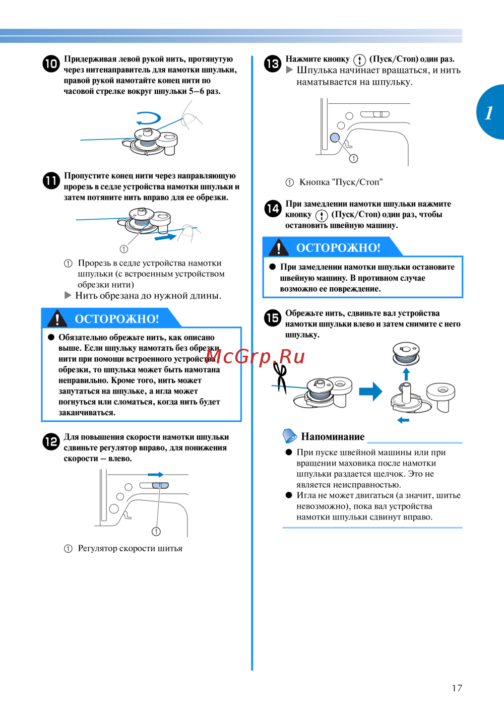 - Подготовка к заправке верхней и нижней нити 15 p.7