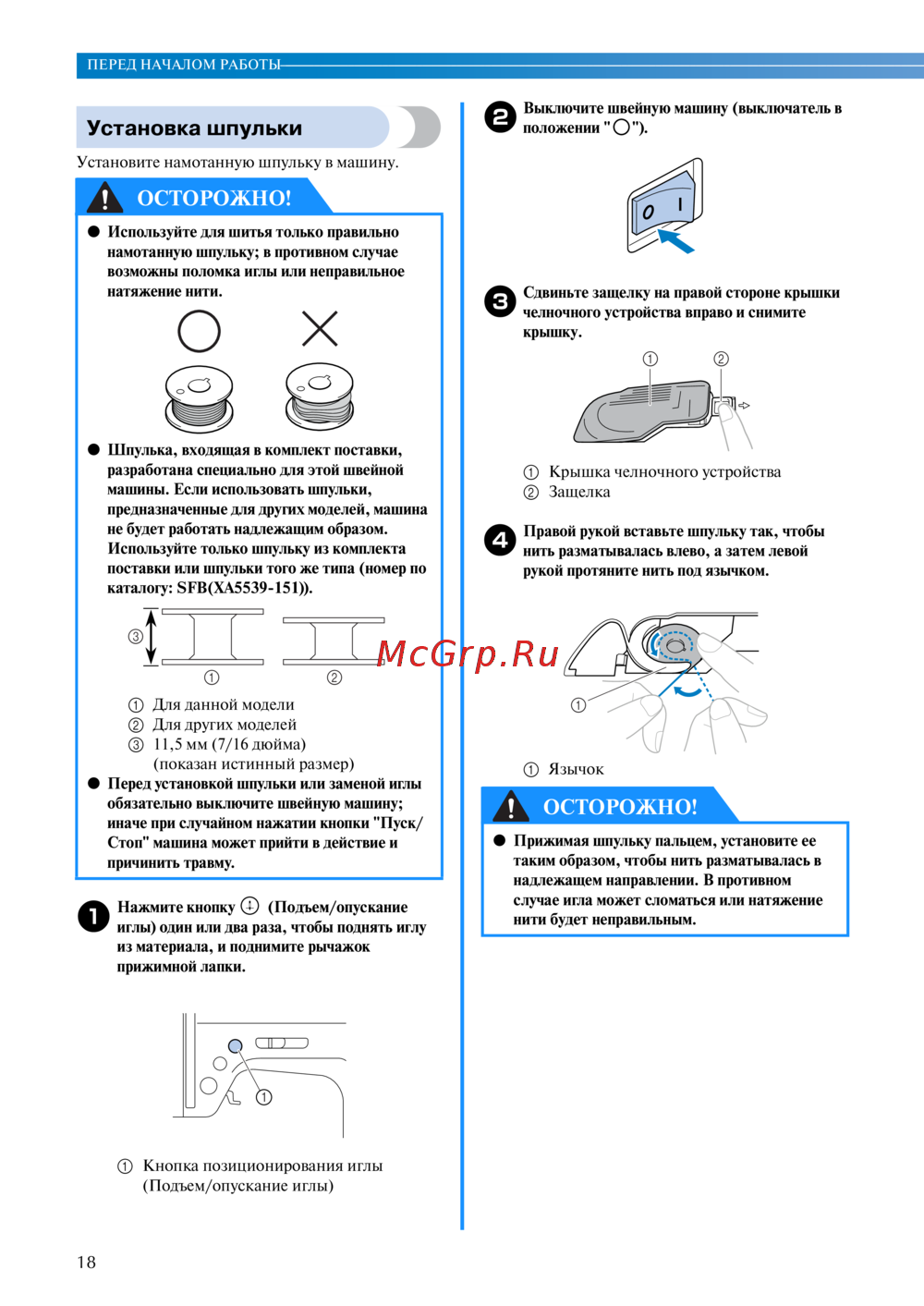 - Подготовка к заправке верхней и нижней нити 15 p.7