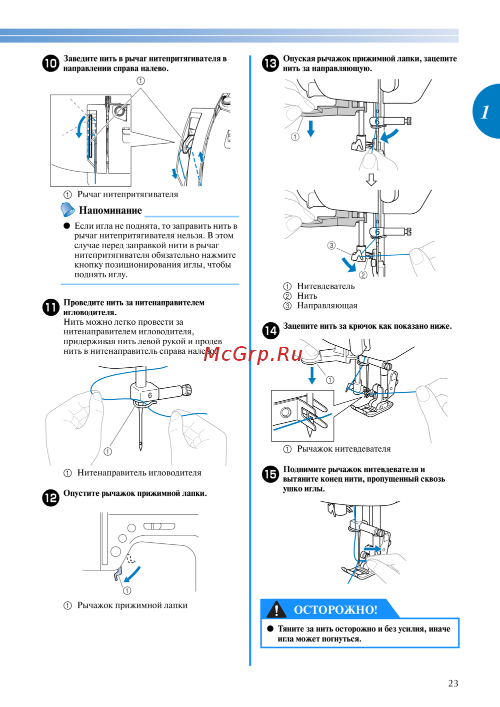 - Подготовка к заправке верхней и нижней нити 15 p.7