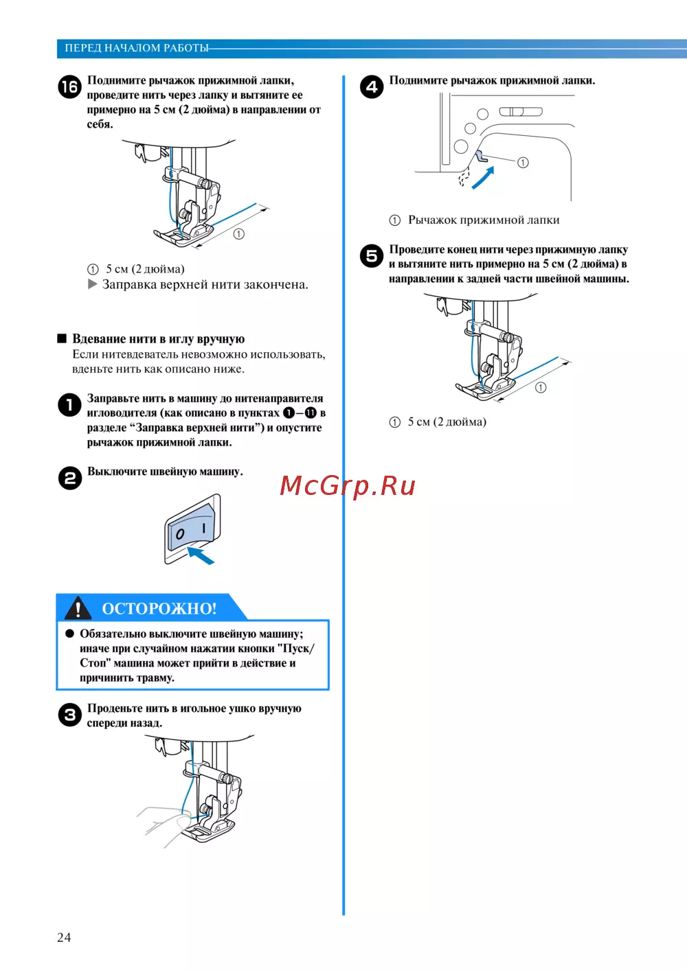 - Подготовка к заправке верхней и нижней нити 15 p.7