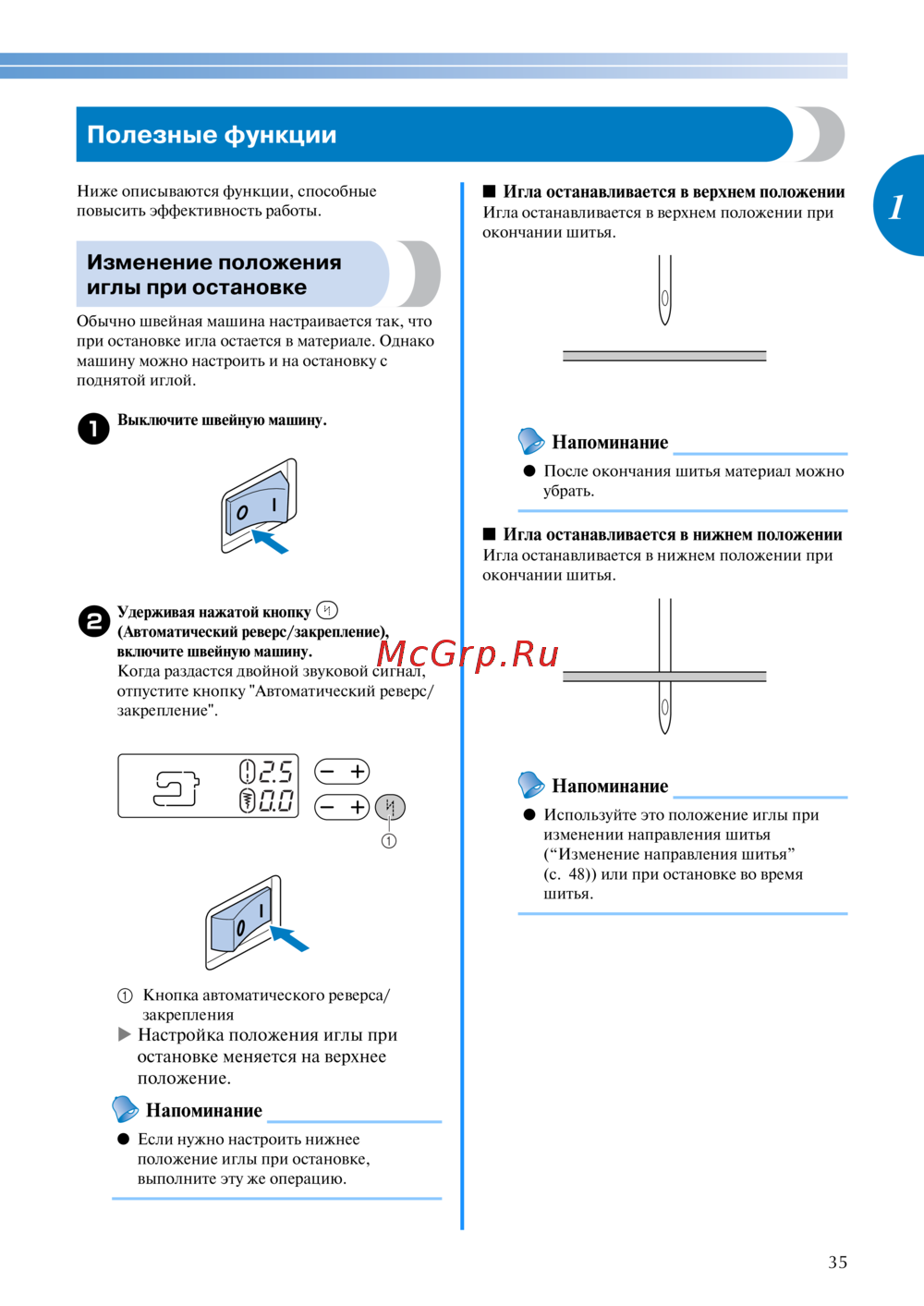 - Изменение положения иглы p.54