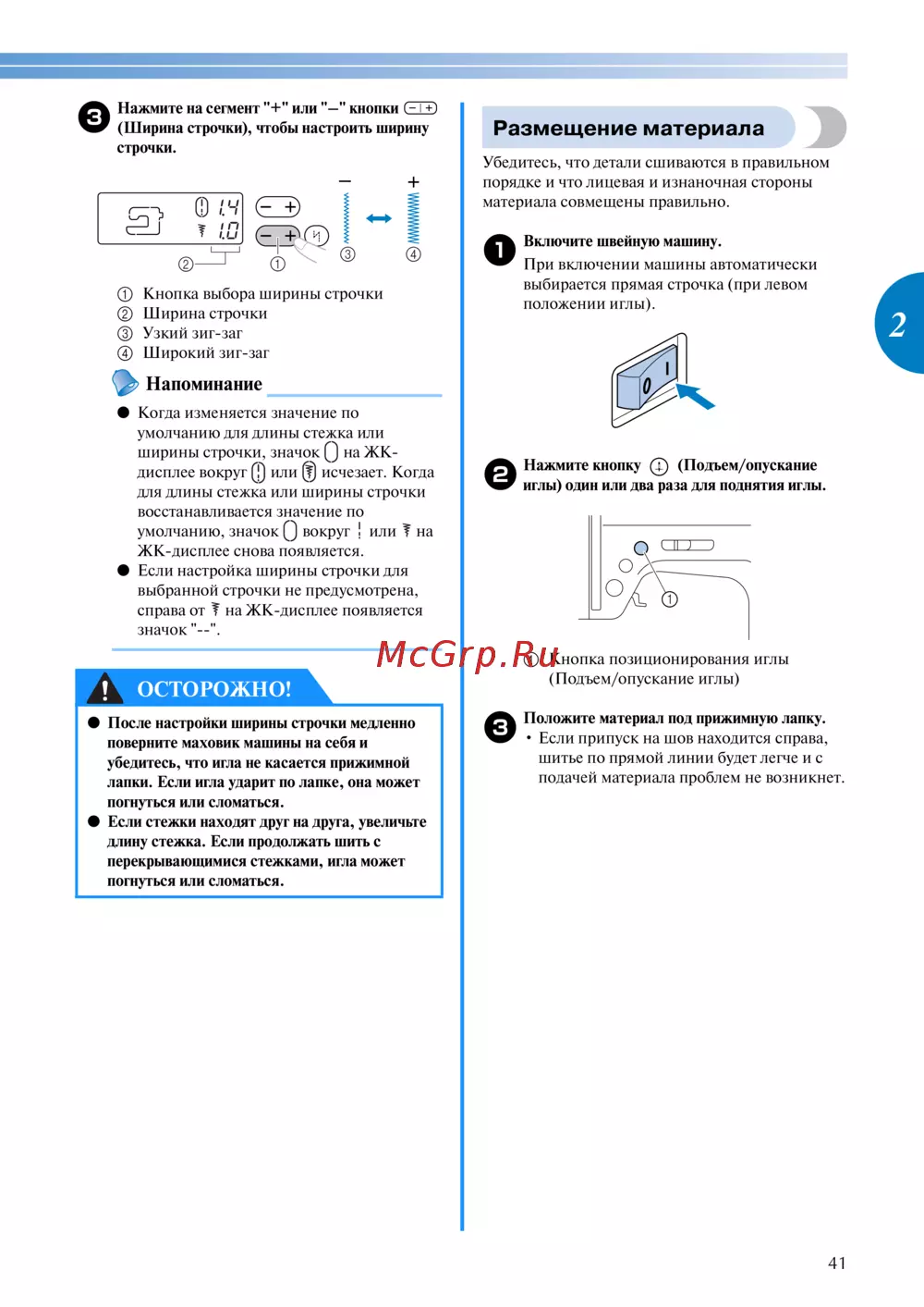 - Выполнив закрепляющие стежки швейная машина автоматически останавливается p.61