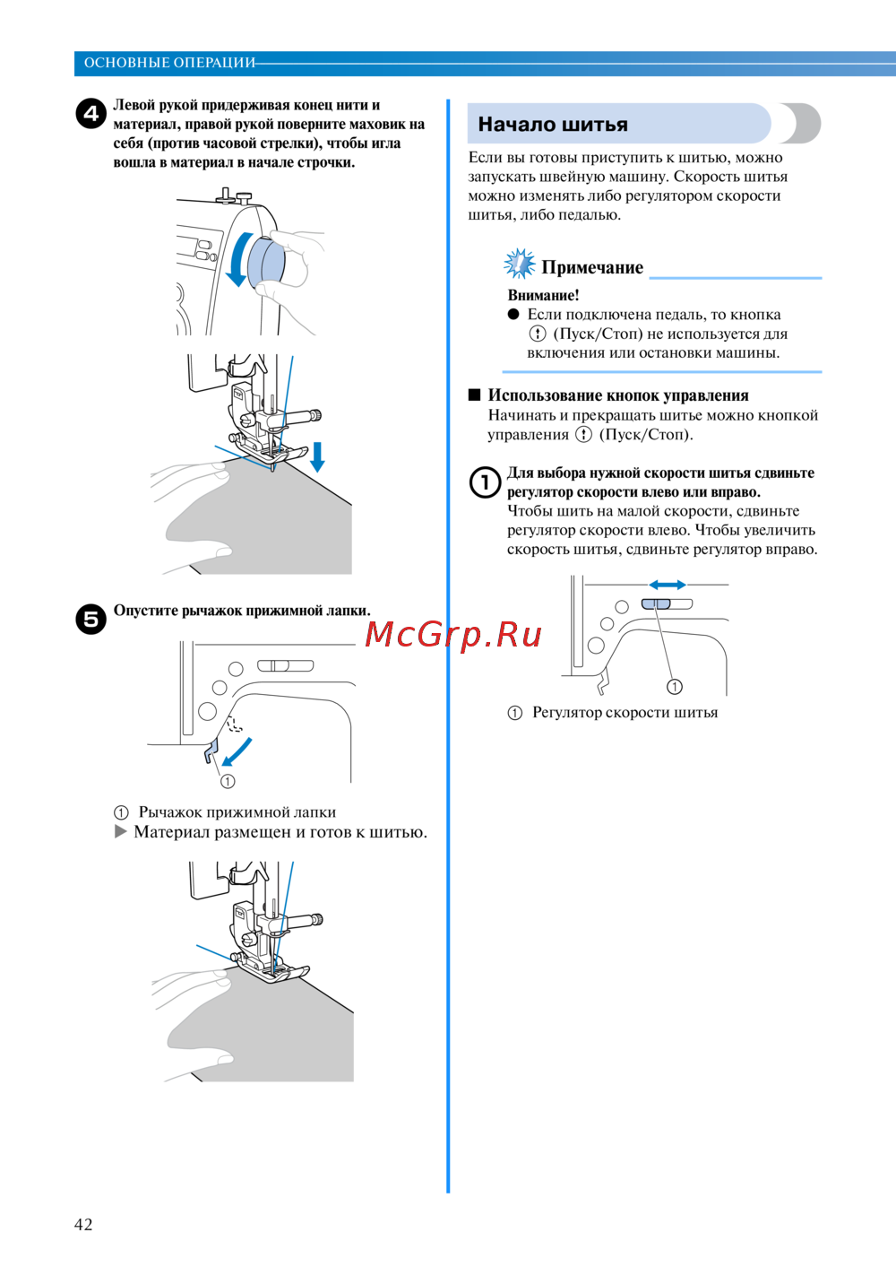 - Изменение положения иглы p.54