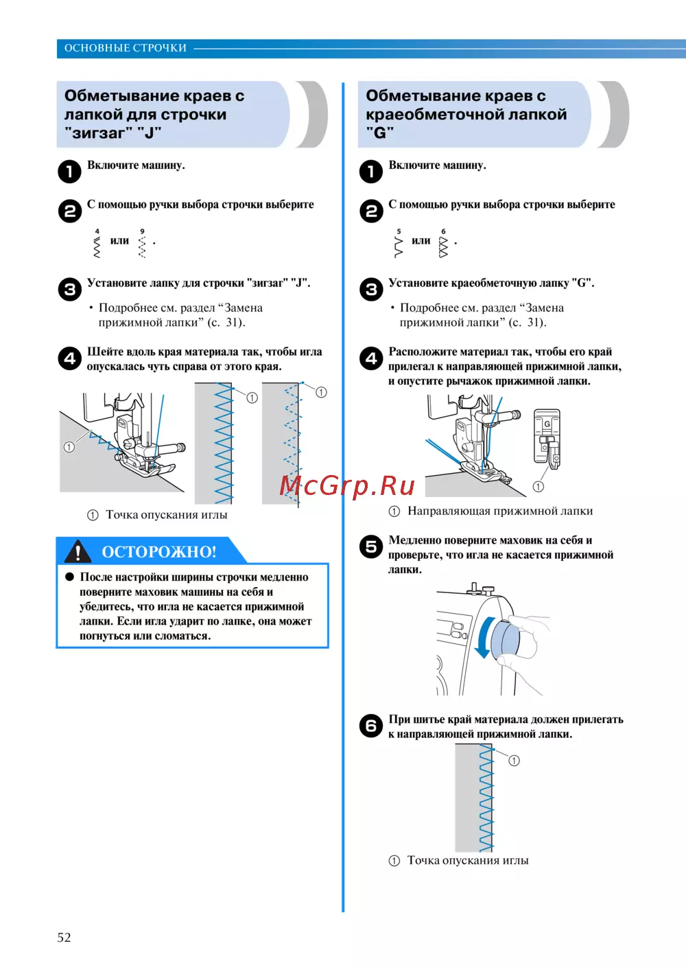 Установите краеобметочную лапку "G".