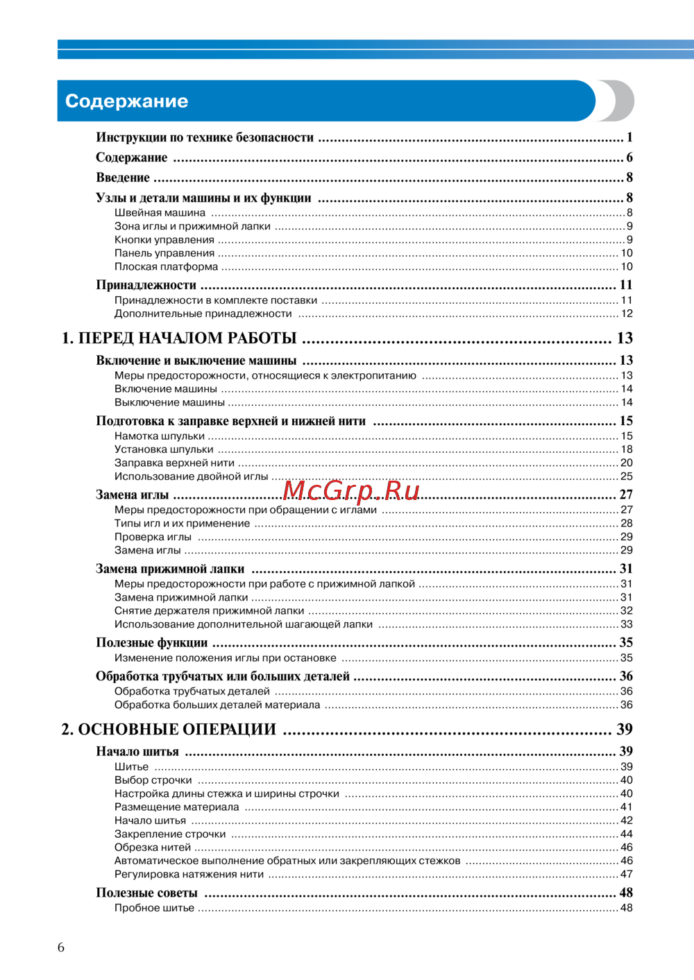 - Подготовка к заправке верхней и нижней нити 15 p.7