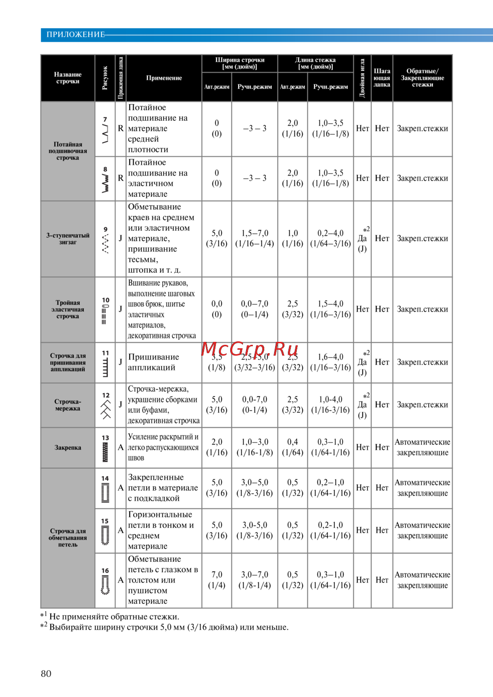 - Выбирайте ширину строчки 5 0 мм 3 16 дюйма или меньше p.81