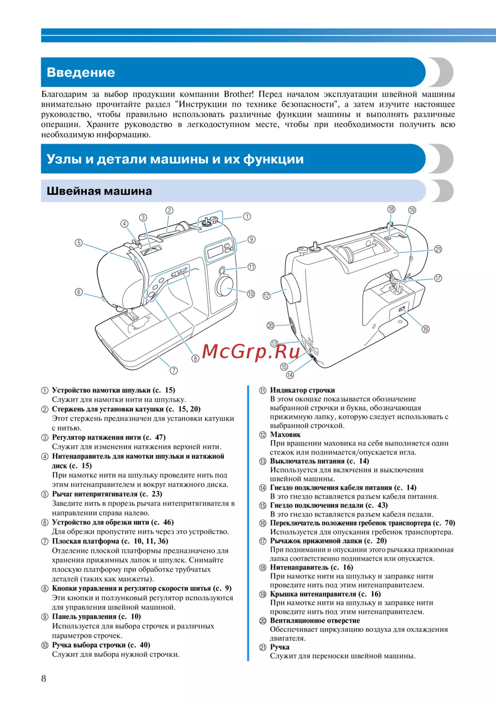 Благодарим за выбор продукции компании Brother! Перед началом эксплуатации швейной машины